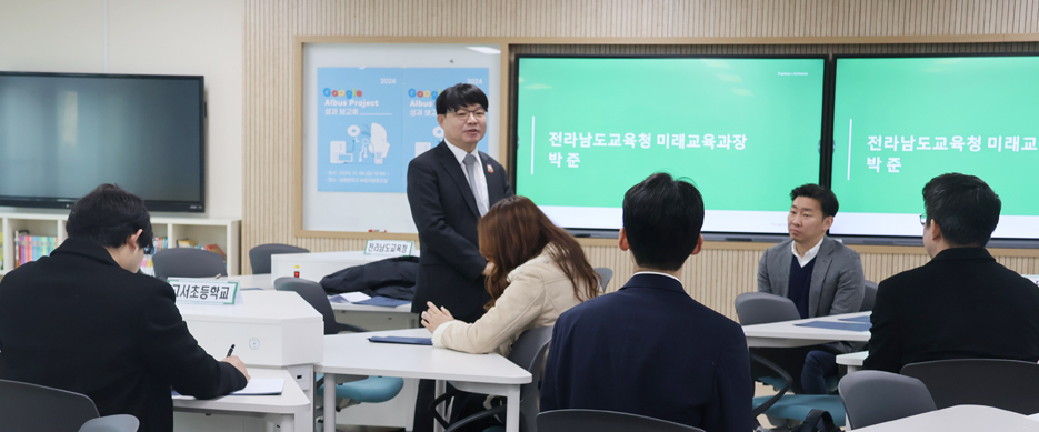 이날 보고회에는 박준 전라남도교육청 미래교육과장, Sophy Bae 구글포에듀케이션 대표, 임철일 서울대학교 교수 등 프로젝트 관계자들이 참석했다.